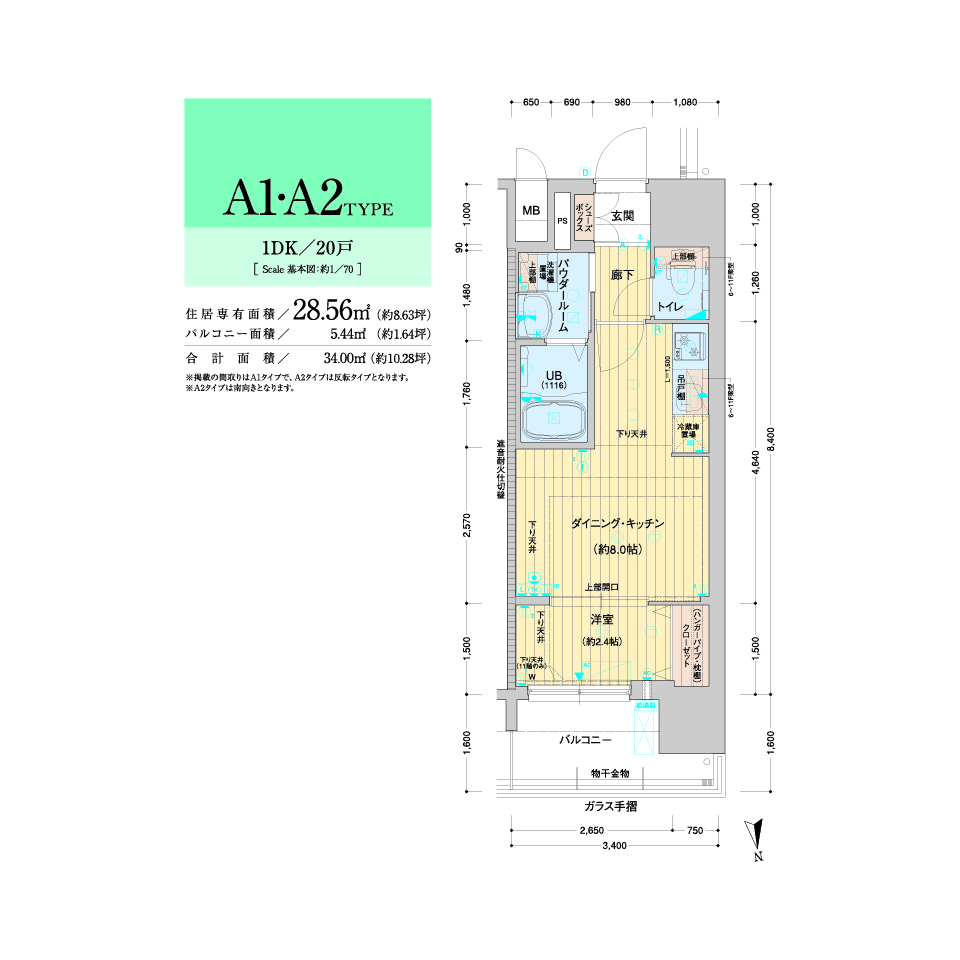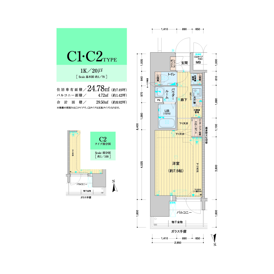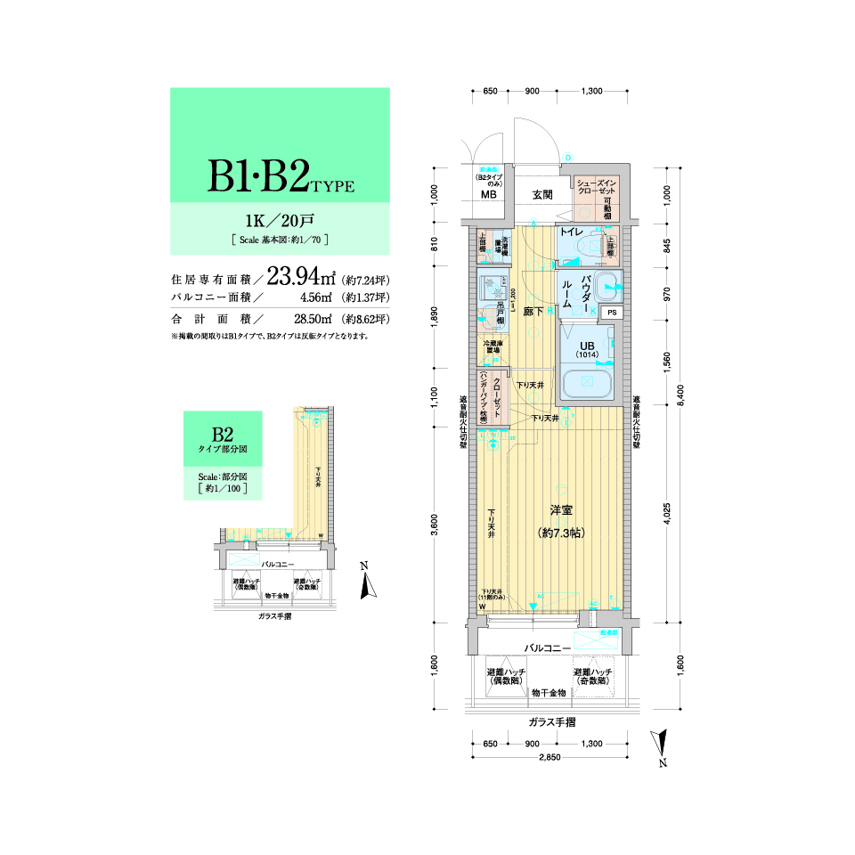 | 住居専有面積 | 23.94㎡~28.56㎡ |