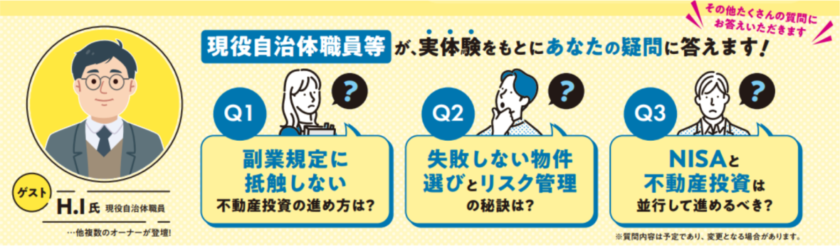現役公務員等が、自らの体験をもとに“不動産投資のリアル”を語ります。