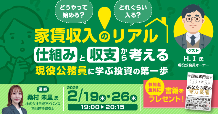 本セミナーでは、現役自治体職員オーナーの体験談を交えながら、家賃収入の仕組みや収支のリアルをわかりやすく解説。